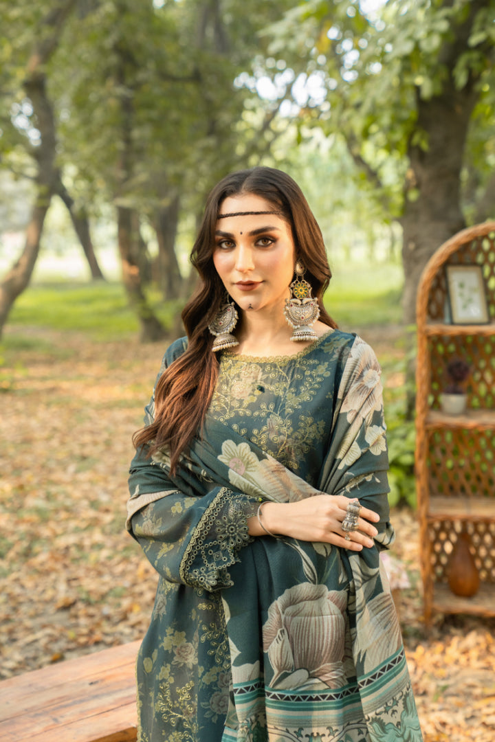 Embroidered Printed Khaddar Shirt  3.0 Meters